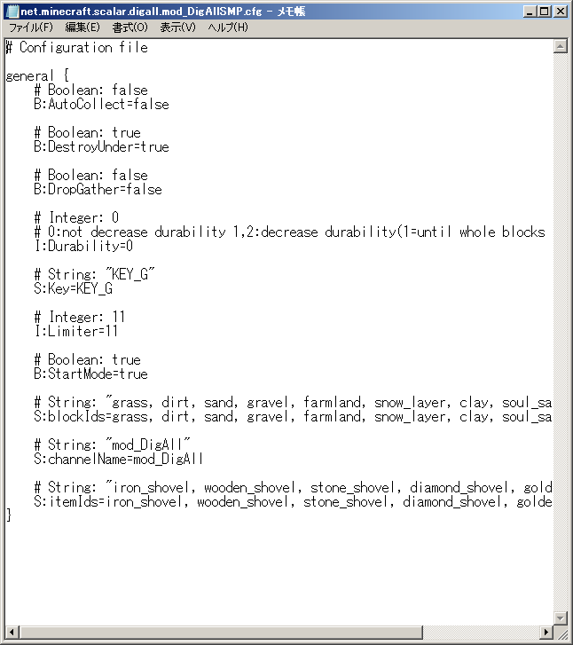 MineAll、DigAllにのみある設定 # Boolean false BAutoCollect=true ←一括破壊したブロックをインベントリに自動で入れる機能、 MineAllではtrue、DigAllではfalse推奨 一括破壊系mod(CutAll, DigAll, MineAll)の設定 〜modで追加されたブロックも破壊する〜 modで追加されたブロックも一括破壊したい! 竹modをはじめ、modによってブロックが追加されたときに、CutAll, DigAll, MineAll(一括破壊系mod)のデフォルトの設定では一括破壊ができません。 今回は、その設定を行います。マインクラフト 鉱石 高さ コンパス 素材 ゲーム Re loader activator じゃがいも 腐ってる 中身 マインクラフト ディグオール 設定 マイクラ 絵 作り方 マイクラ ココアビーンズ 使い道 Minecraft レール 間隔 マインクラフト 街 再現 マイクラ ダウングレード